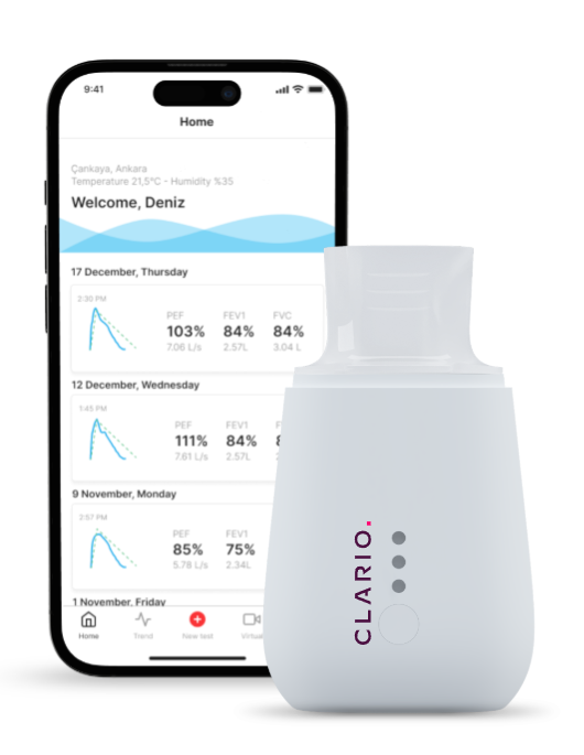 Clario’s ArtiQ.Spiro supports interpretation of spirometry.